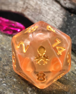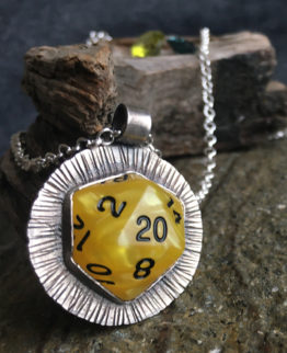 All the dice in stock I have for you to choose specifically for your custom Amulet of Adventuring. Select your die, pick a style option/price point in the drop down menu, and choose chain length. And you’re done! Prices listed INCLUDE the finished amulets and chain using the specific dice.